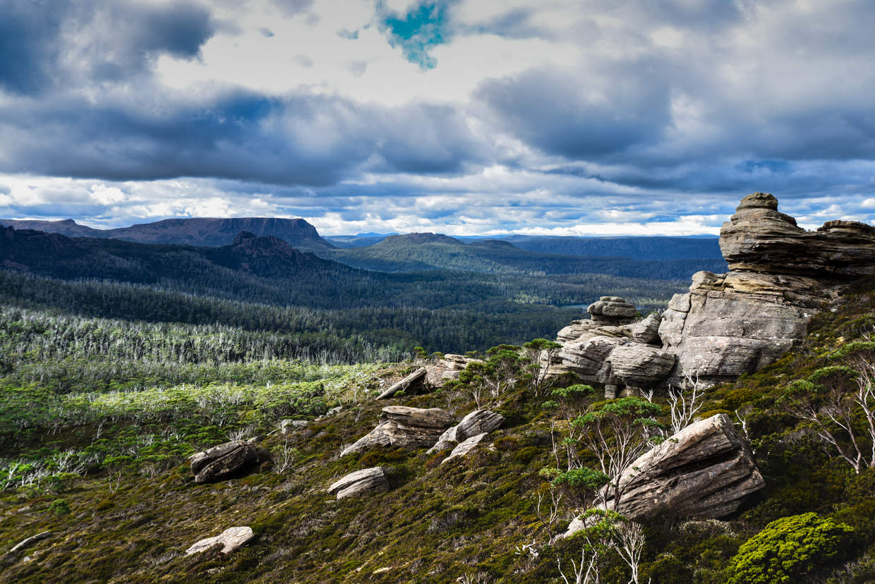 Après des kilomètres de route sinueuse, en évitant soigneusement les opossums et wallabies qui traversent devant nos roues (et les nombreux déjà écrasés sur la chaussée) nous arrivons enfin dans la région montagneuse tasmanienne, surnommé la « terre des 3000 lacs »
